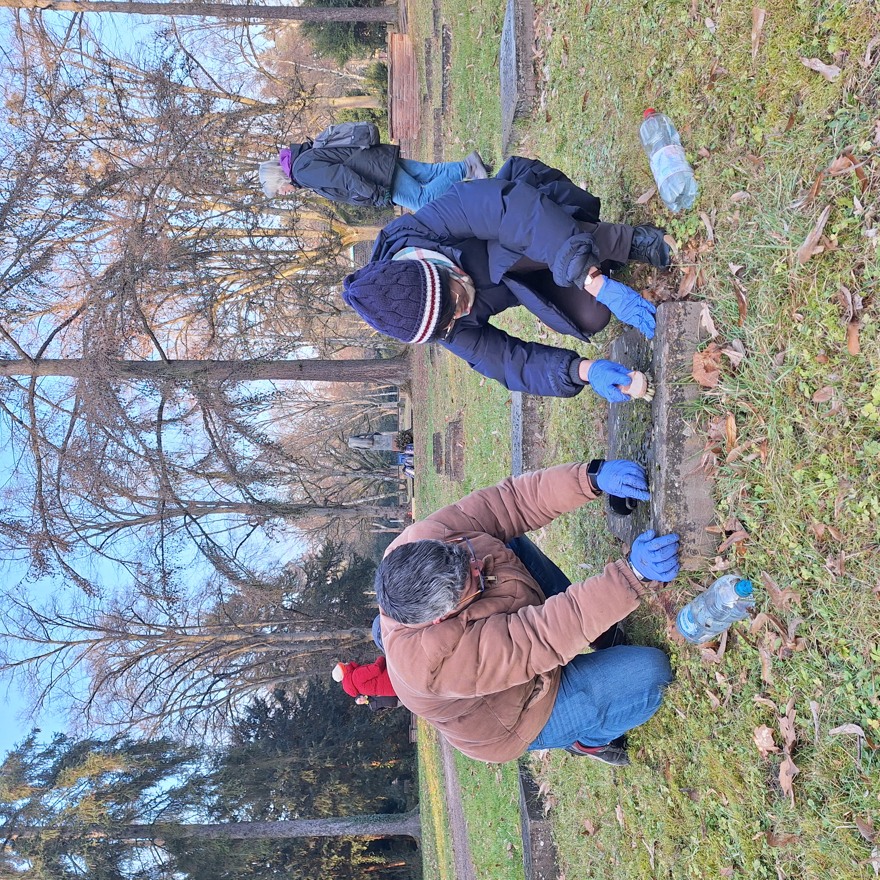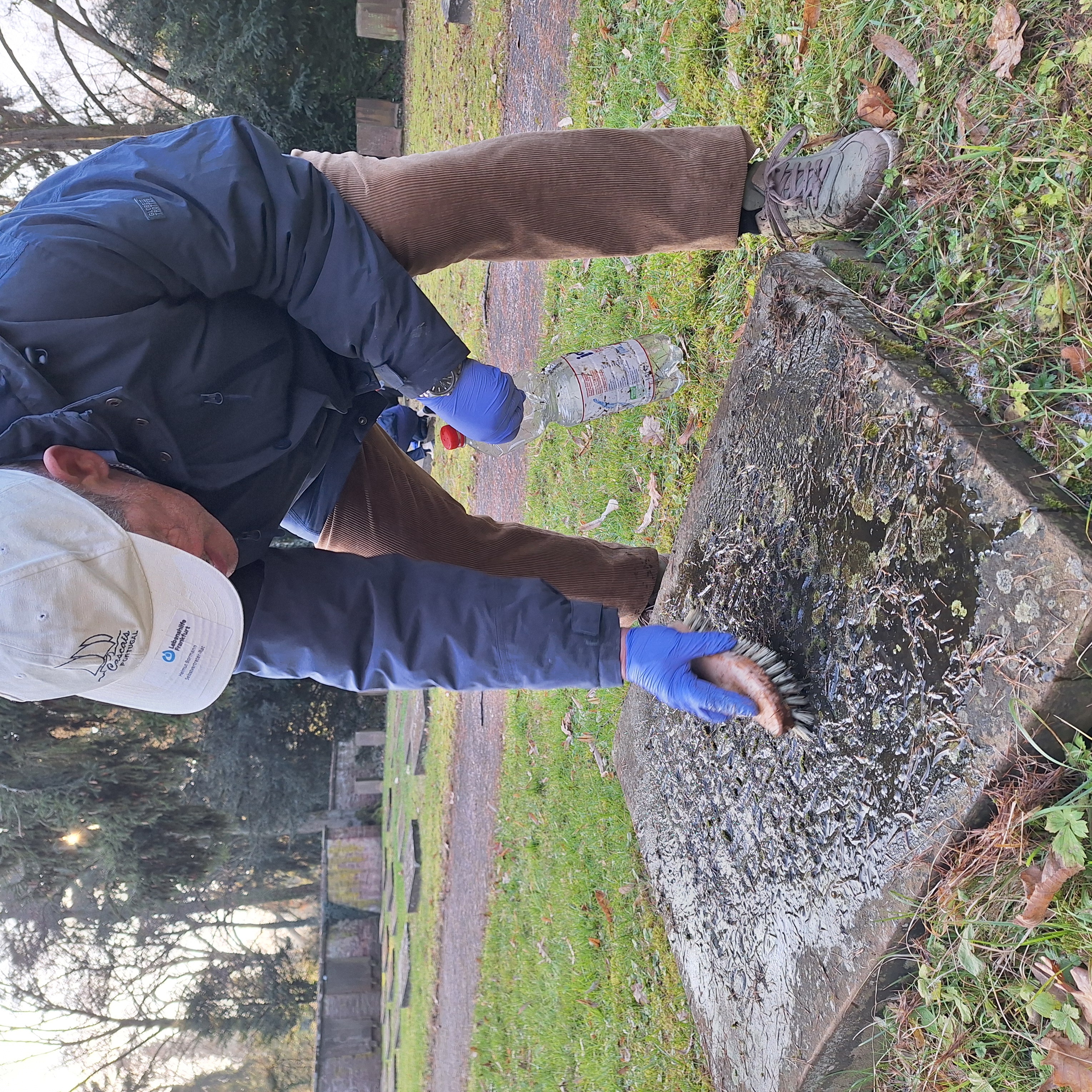 Auch dieses Mal haben wir wieder die Grabsteine geschrubbt.