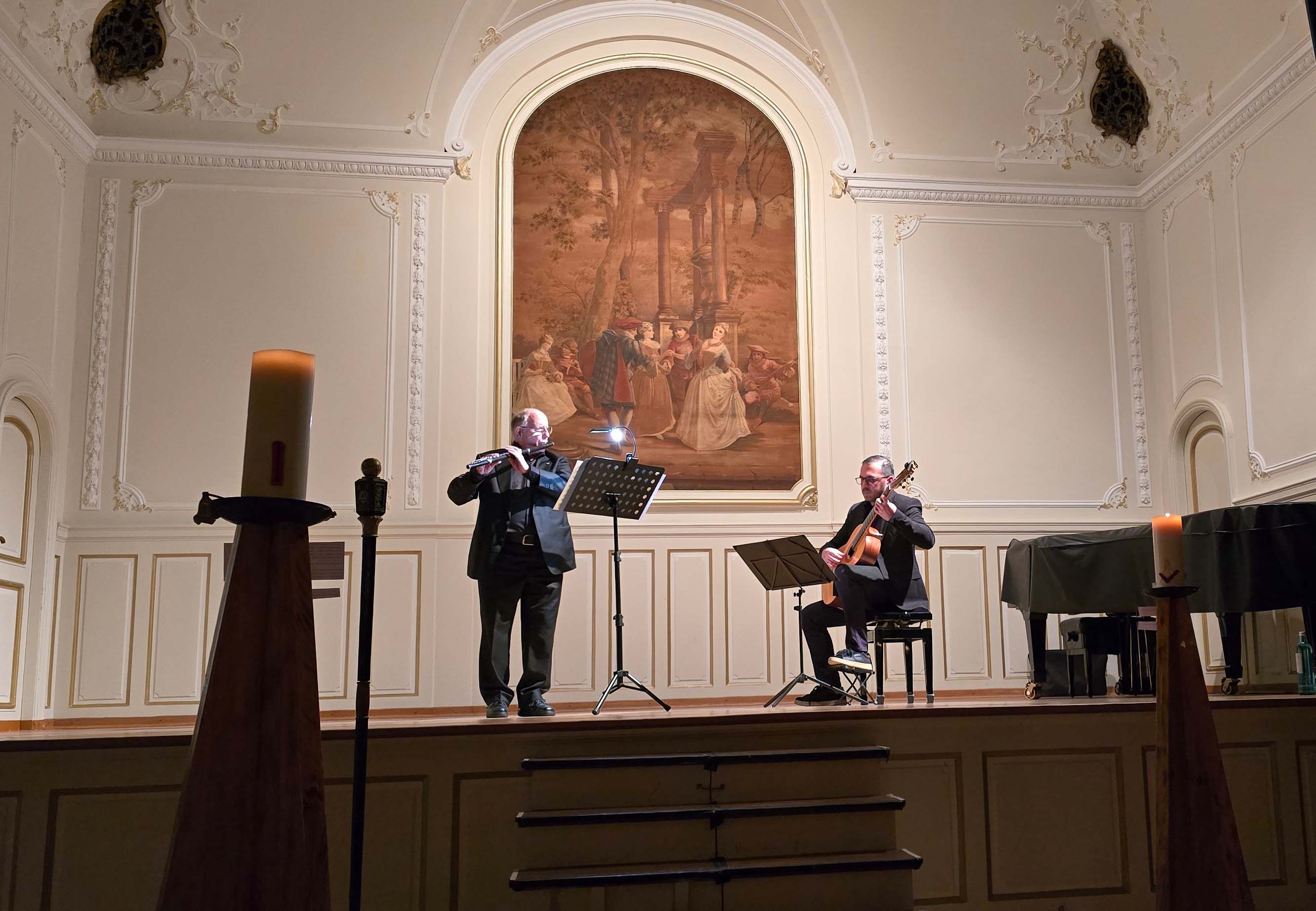 Foto: Rolf Bissinger (Flöte) und David Kandareli (Gitarre).